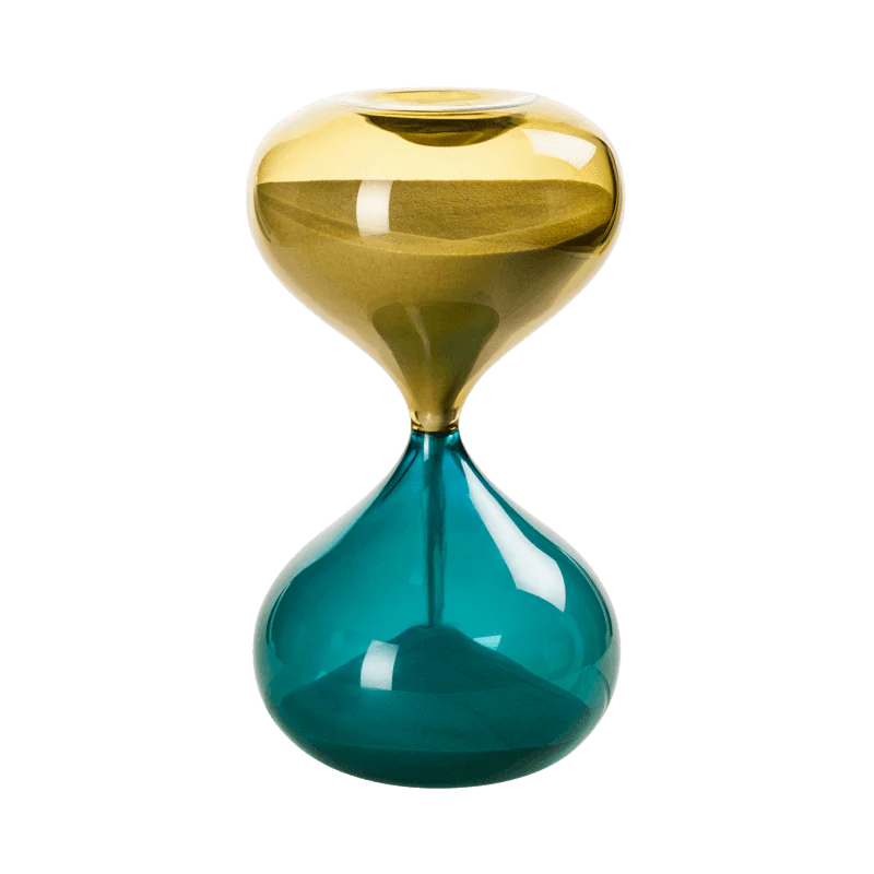 In perennial balance between two different colors, the sand passes between two glass puffs, taking on the color, becoming part of it.
