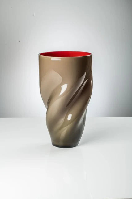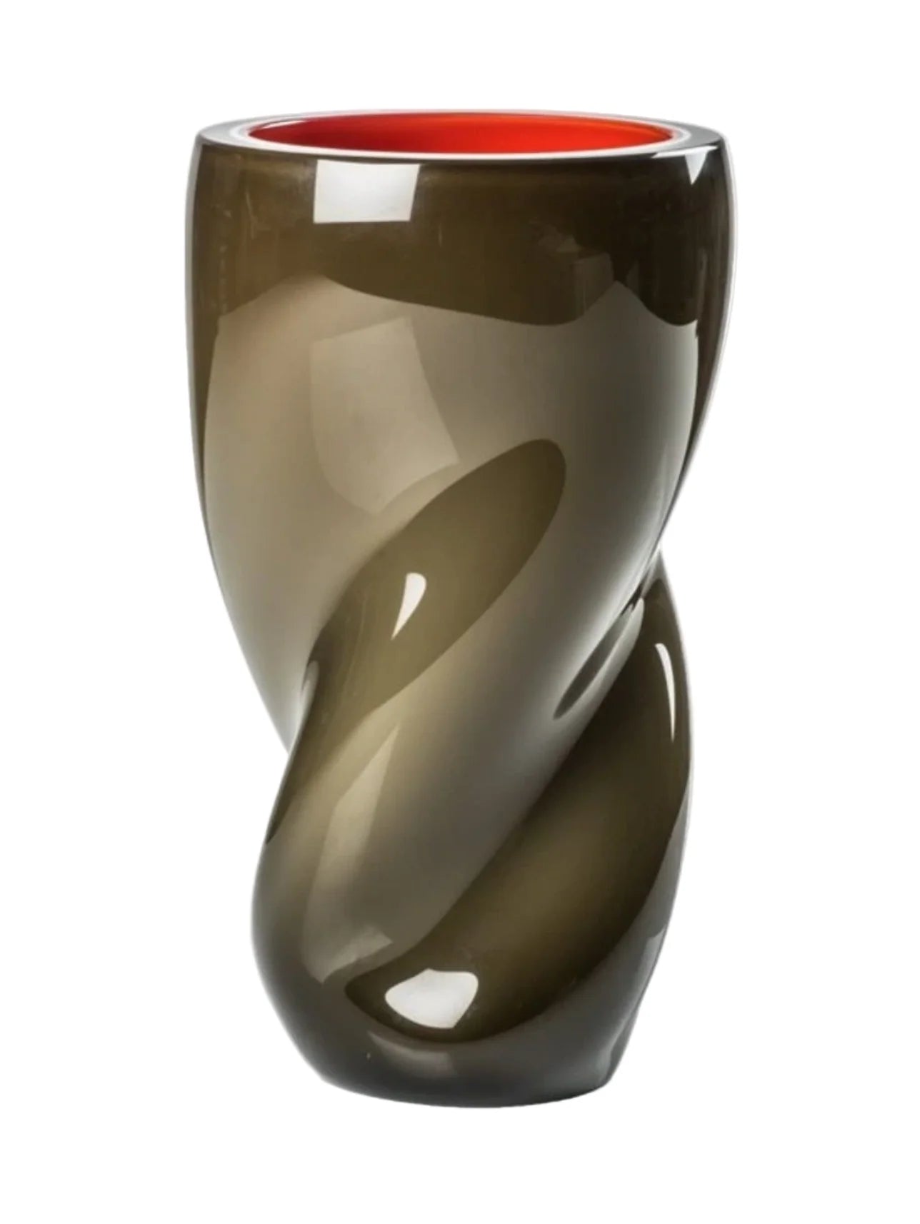 A masterful interplay of colour and form, the Torcia vase evokes the flicker and sway of a flaming torch. Layer upon layer of hand-blown glass is skilfully overlaid and then twisted at the base, creating a dynamic, conical silhouette that seems to dance with light.